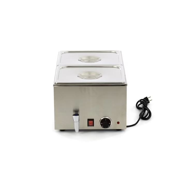 Optimisez la polyvalence de votre service avec ce bain-marie professionnel en acier inoxydable, une unité de table de 8 kg équipée d’un robinet de vidange et livrée avec deux bacs GN 1/2 (15 cm de profondeur). Sa puissance de 1200W permet un maintien thermique précis entre 30 et 95°C, assurant une chaleur homogène pour deux préparations simultanées grâce à sa cuve robuste soudée sans soudure. Entièrement sécurisé par des pieds antidérapants et un bouton d’alimentation protégé, ce matériel conforme aux normes HACCP garantit une conservation exemplaire de vos saveurs et une facilité d’entretien exceptionnelle pour toutes les cuisines à fort débit.