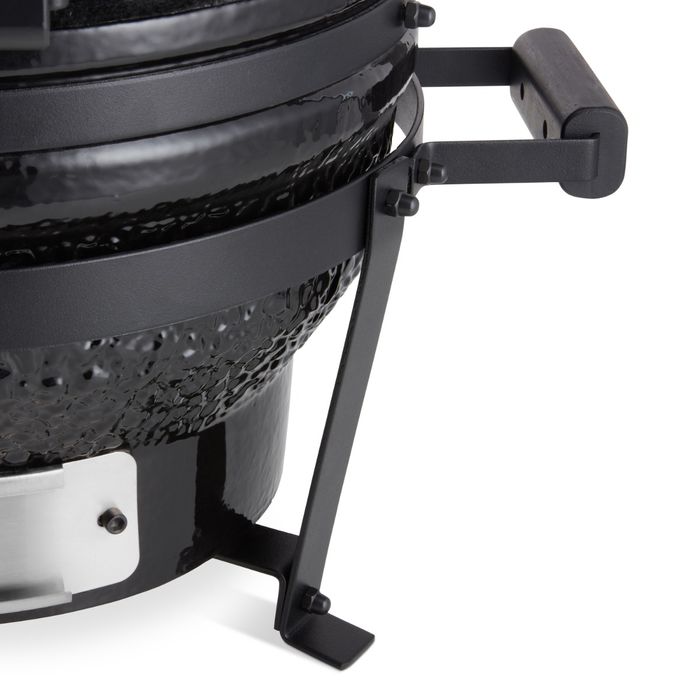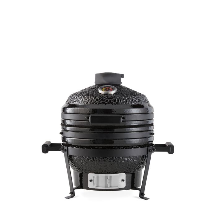 Ce four Kamado professionnel de table se distingue par son ingénierie de circulation d’air, pilotée par deux bouches d’aération haute précision. Le thermomètre intégré, doté d’une double échelle Celsius et Fahrenheit, permet un monitoring rigoureux de l’enceinte de cuisson. Son châssis, ses sangles et ses charnières en acier revêtu garantissent une robustesse à toute épreuve et une manipulation fluide du dôme. Compact et stable avec ses dimensions de 55 x 55 cm, il s’intègre parfaitement sur un plan de travail ou une desserte, transformant chaque session culinaire en une démonstration de stabilité thermique et de régularité aromatique.