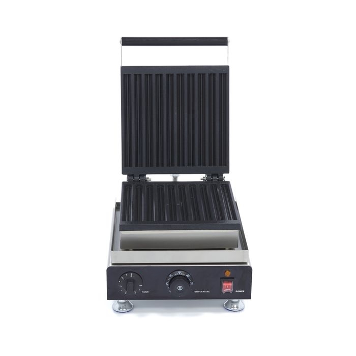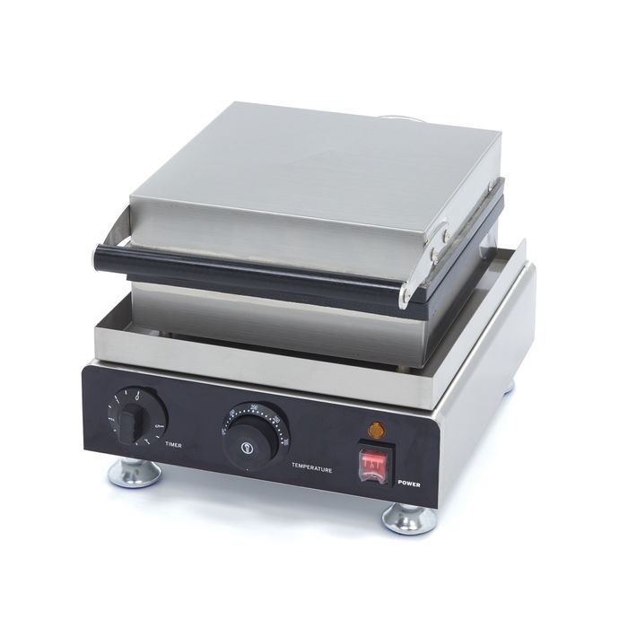 Maîtrisez la cuisson avec une régularité industrielle. Équipé de plaques en aluminium avec revêtement antiadhésif haute performance, cet appareil garantit un démoulage propre et sans effort. Son thermostat variable de 50°C à 300°C permet d’ajuster la dorure selon vos préférences. Sa structure massive de 11 kg repose sur quatre pieds en acier inoxydable, offrant une stabilité inébranlable sur votre comptoir CHR, tandis que sa poignée robuste assure une manipulation sécurisée lors des pics d’activité intensifs.