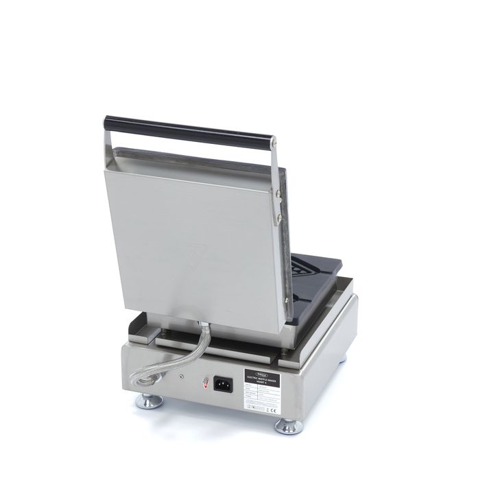 Maîtrisez l’exécution de vos gaufres avec une précision absolue. Équipé de plaques en aluminium avec revêtement antiadhésif haute performance, cet appareil garantit un démoulage impeccable sans briser la forme délicate des cœurs. Son thermostat variable de 50°C à 300°C offre une flexibilité totale pour ajuster la dorure selon votre pâte. Sa structure massive de 11 kg repose sur quatre pieds en acier inoxydable, offrant une stabilité inébranlable sur votre comptoir CHR, tandis que sa poignée robuste assure une manipulation sécurisée lors des cadences les plus soutenues.