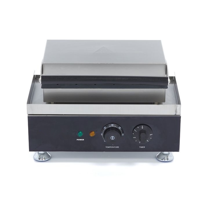 Ce matériel de cuisson performant repose sur un châssis en acier inoxydable robuste avec un poids net de 11 kg, garantissant une stabilité inébranlable sur votre plan de travail. Équipé d’un thermostat réglable de 50°C à 300°C et de plaques en aluminium avec revêtement antiadhésif, il offre une répartition millimétrée de la chaleur pour des pièces de 135 mm de long. Les encoches dédiées permettent un positionnement parfait des bâtonnets, tandis que la poignée ergonomique isolante assure une manipulation sécurisée lors des services intensifs en food truck ou snack.