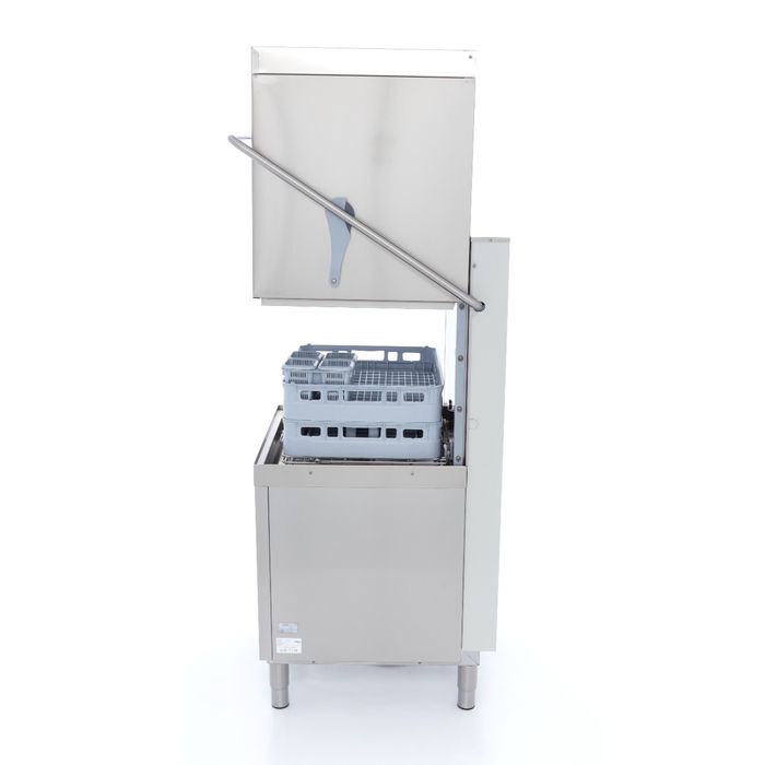 L’augmentation de votre cadence de nettoyage prend une dimension supérieure avec ce lave-vaisselle à capot acceptant des paniers de 50×60 cm. Sa conception privilégie un dégagement vertical généreux, permettant l’insertion de plateaux et de verres jusqu’à 45 cm de hauteur sans aucune obstruction. Grâce à sa motorisation triphasée de 9500W et ses trois programmes cadencés (60, 120 et 150 secondes), l’appareil assure une rotation fluide de votre vaisselle, même lors des pics d’activité les plus intenses. Malgré cette puissance industrielle, le châssis de 100 kg absorbe les vibrations pour maintenir un environnement de travail serein avec un niveau sonore inférieur à 65 dB, garantissant ainsi le confort acoustique de votre brigade en cuisine.