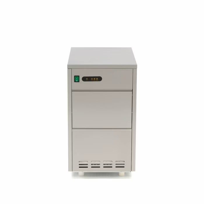 La performance au format mini s’appuie sur une puissance optimisée de seulement 215W et l’utilisation du réfrigérant écologique R290. Avec un poids net de 28 kg et des dimensions ultra-compactes (H58 cm), cette machine s’intègre avec une discrétion totale sous un comptoir ou sur un plan de travail exigus. Son panneau de commande convivial, équipé de voyants lumineux pour les niveaux d’eau et de stockage, assure un pilotage intuitif et sécurisé au quotidien. Livrée avec sa pelle à glace pour un service hygiénique, elle allie robustesse structurelle et praticité pour les professionnels recherchant une solution de froid agile et durable.