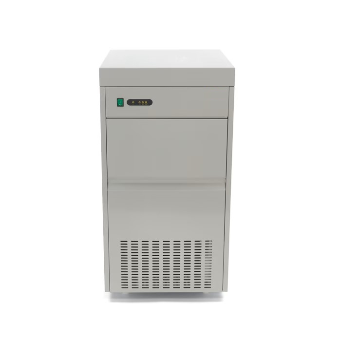 Spécialement conçue pour les établissements exigeant un volume important, comme les poissonneries, les grands bars à cocktails ou les services de traiteur, cette machine assure une production massive et continue de 130 kg par 24 heures. Sa capacité de stockage généreuse de 40 kg permet de disposer d’une réserve constante pour la présentation et le transport de vos produits frais. Grâce à son système de refroidissement par air, elle offre une efficacité remarquable tout en étant adaptée à une installation sous comptoir pour optimiser votre espace de travail.