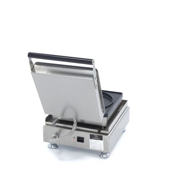 Idéal pour les snacks, les marchés et les coffee-shops, cet appareil à pancakes allie robustesse et performance thermique exemplaire. Doté d’une plaque en aluminium antiadhésive de Ø21,5 cm, il garantit une cuisson parfaitement homogène et un démoulage fluide. Sa puissance de 1,75 kW, associée à un thermostat réglable de 50 à 300°C et une minuterie intégrée, permet une maîtrise totale de chaque service. Sa structure robuste en acier inoxydable de 12 kg (L30 x P38 x H26 cm) assure une stabilité inébranlable et une longévité exceptionnelle pour un usage intensif quotidien en environnement professionnel.