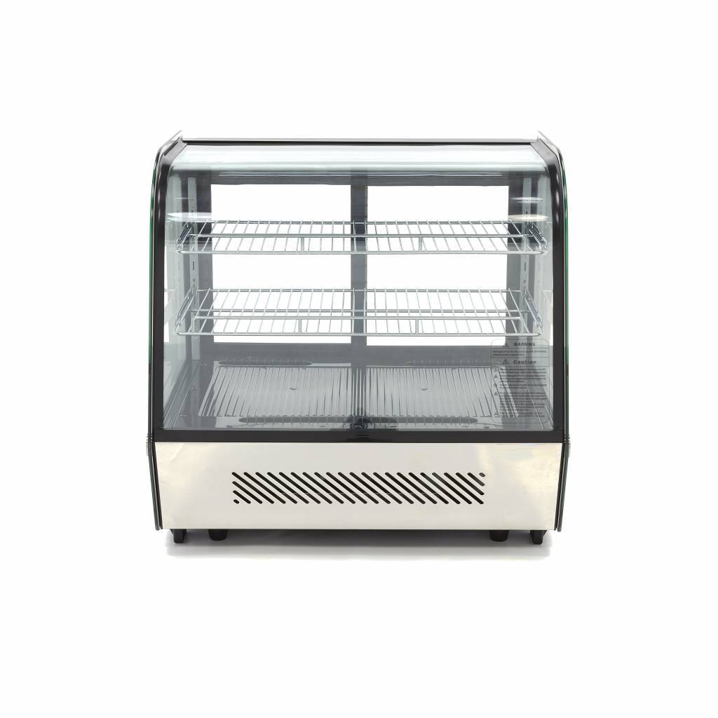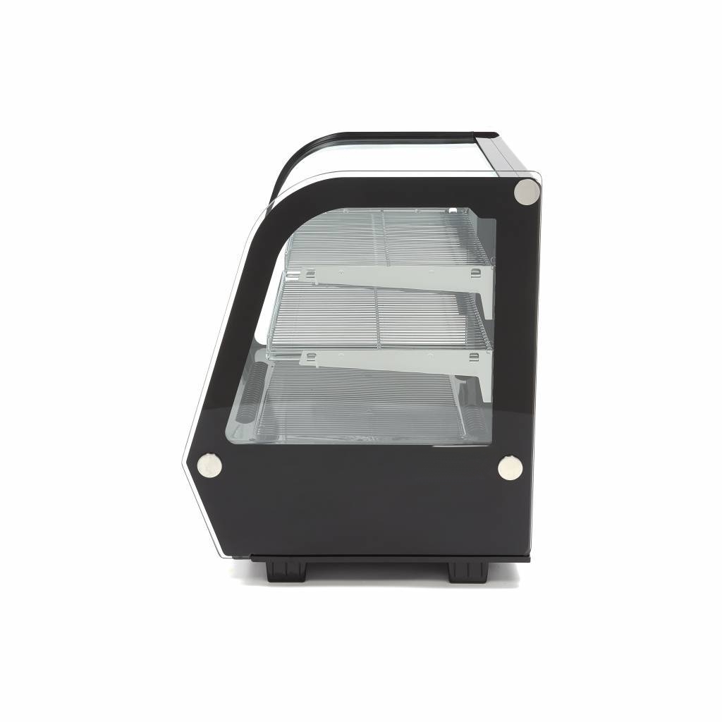 Sublimez l’exposition de vos créations pâtissières avec cette vitrine réfrigérée de 120 litres noire, une solution de comptoir de 70 cm de large alliant une vitre bombée luxueuse à une finition inox haut de gamme.